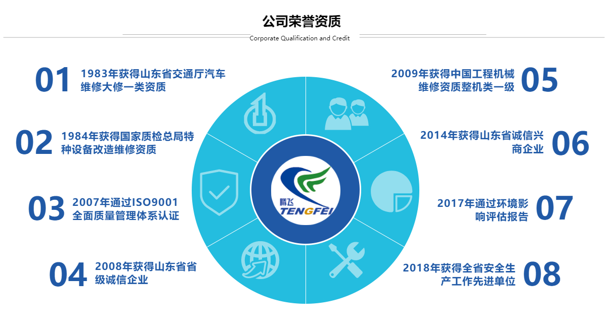 泰安騰飛工程機(jī)械有限公司,中聯(lián)重科山東維修中心,擁有自營(yíng)備件中心庫(kù)。坐落于泰山腳下,泰安市東部新區(qū),交通方便。公司是以工程機(jī)械維修,備件供應(yīng)、二手工程機(jī)械交易為主營(yíng)。是華北、華東地區(qū)工程機(jī)械維修規(guī)模較大、備件齊全、服務(wù)范圍廣的維修服務(wù)企業(yè)。中聯(lián)重科全系列汽車起重機(jī)售后服務(wù)維修,承接國(guó)內(nèi)外汽車起重機(jī)、挖掘機(jī)、裝載機(jī)、叉車、道路救援服務(wù)等各種工程機(jī)械修理、保養(yǎng),中聯(lián)重科山東備件中心庫(kù)、徐工、三一、泰安起重機(jī)全車配件。同時(shí)是濰柴、上柴、法士特變速箱、漢德車橋的服務(wù)站和備件經(jīng)銷商,是人保、太平洋、中華聯(lián)合、平安等保險(xiǎn)公司戰(zhàn)略合作拆解定損維修中心。公司占地30畝,辦公區(qū)2000平方米,維修車間8000平方米。試車坪6000平方米。備件庫(kù)面積2000平方米。員工120余人,技術(shù)人員80余人,工程師4名。山東省交通廳一類大型汽車維修資質(zhì)、中國(guó)工程機(jī)械維修整機(jī)類一級(jí)資質(zhì),并通過(guò)ISO9001質(zhì)量管理體系認(rèn)證。公司由中國(guó)工程起重機(jī)泰...